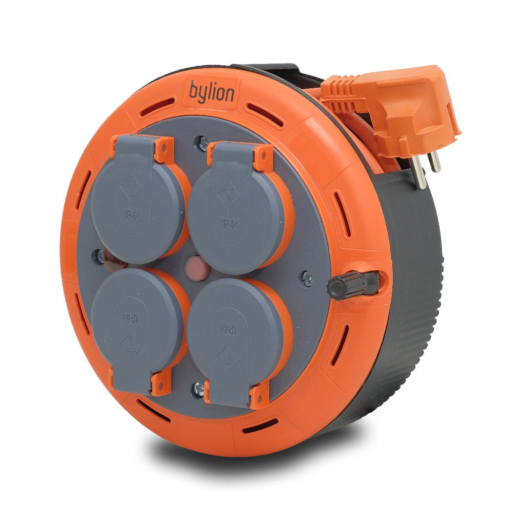 IP44 Cable de extensión de rodillo de casete compacto, cable de 5 m con 4 tomas + fusible térmico/niño, 3x1mm2, toma de tierra tipo SCHUKO, PHP-05310-F