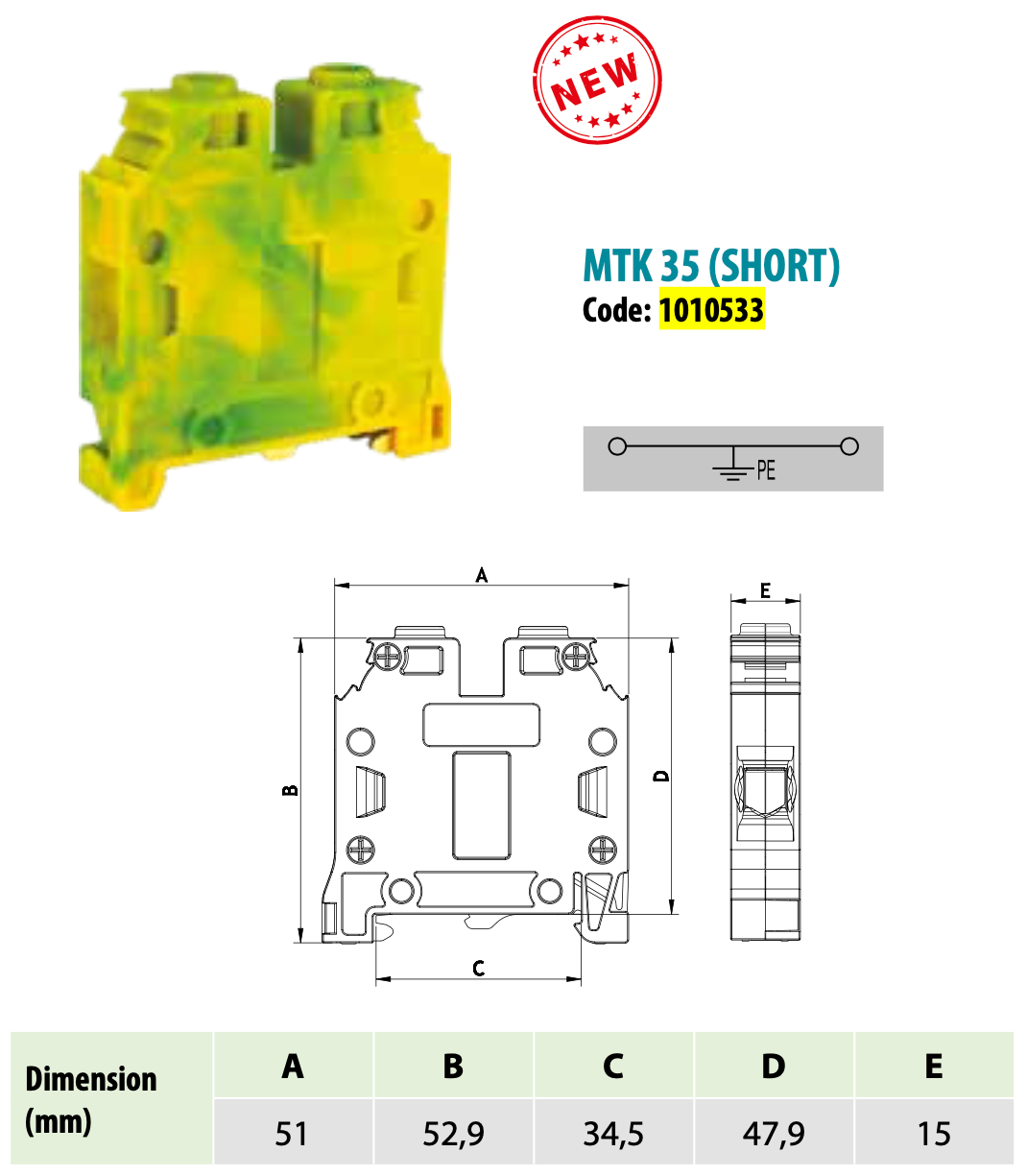 ONKA 35mm2 PE Conector para carril de tornillos regleta de bornes carril DIN 2 hilos gris, 1010533