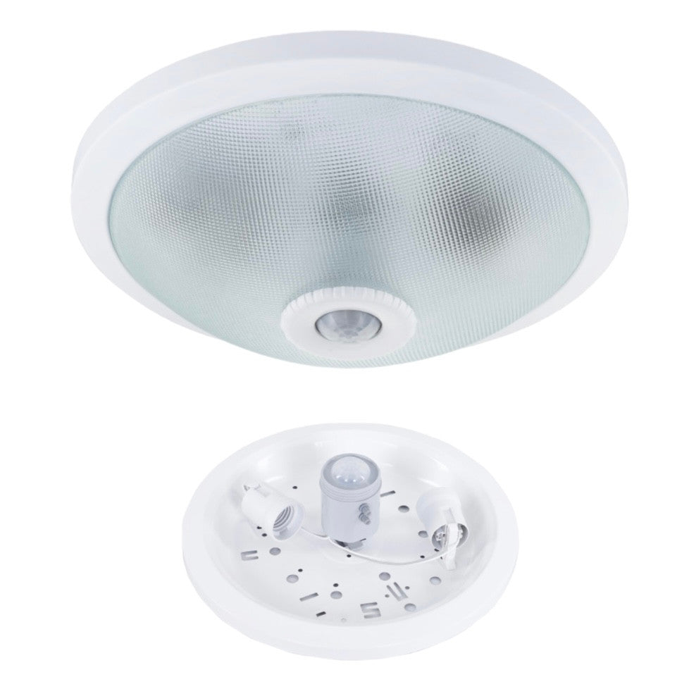 Luminaria muy cómoda y práctica con sensor de movimiento para instalación en techo. Proporciona un importante ahorro de energía para zonas públicas, lavaderos, aseos, pasillos y otras estancias en las que sólo es necesario encender las luces cuando hay una persona cerca. Las bombillas reemplazables y la pantalla de cristal hacen que la vida útil de la lámpara sea casi ilimitada.