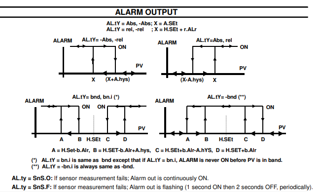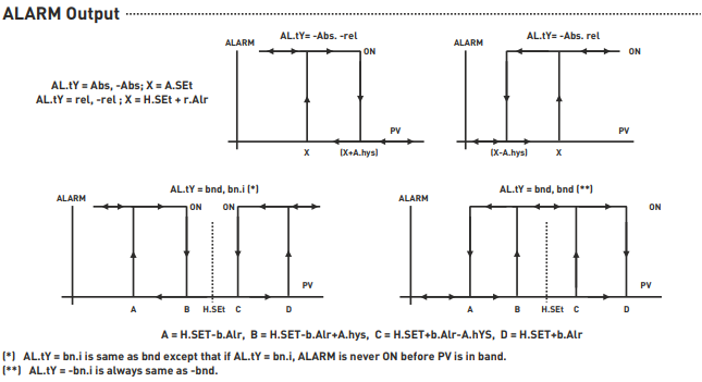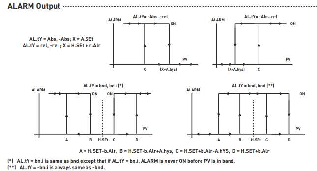Salidas de relé OUT y ALARMA (NO+NC) 250 VAC, 2A (ALARMA ON sólo en DT-48Y)