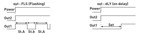 Relé temporizador con dos funciones: una función de retardo a la conexión y una función de relé cíclico.