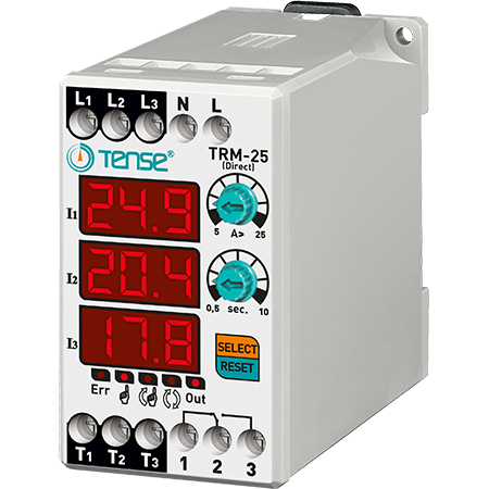 Relé de sobreintensidad digital directo con pantalla LED de 3×3 dígitos TRM-25