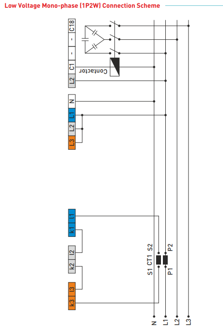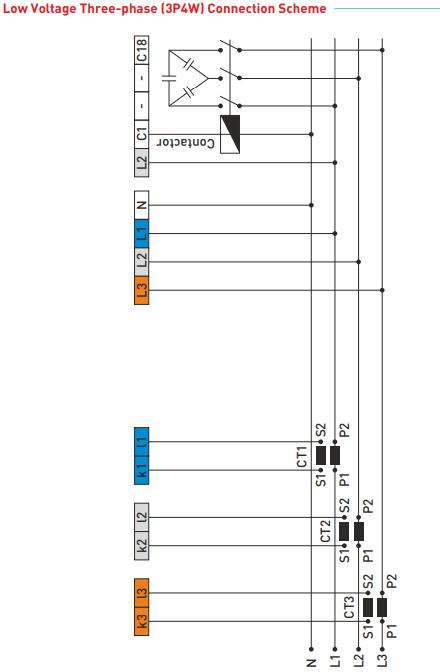 Posibilidad de conectar un condensador monofásico, bifásico y trifásico y una reactancia en derivación.